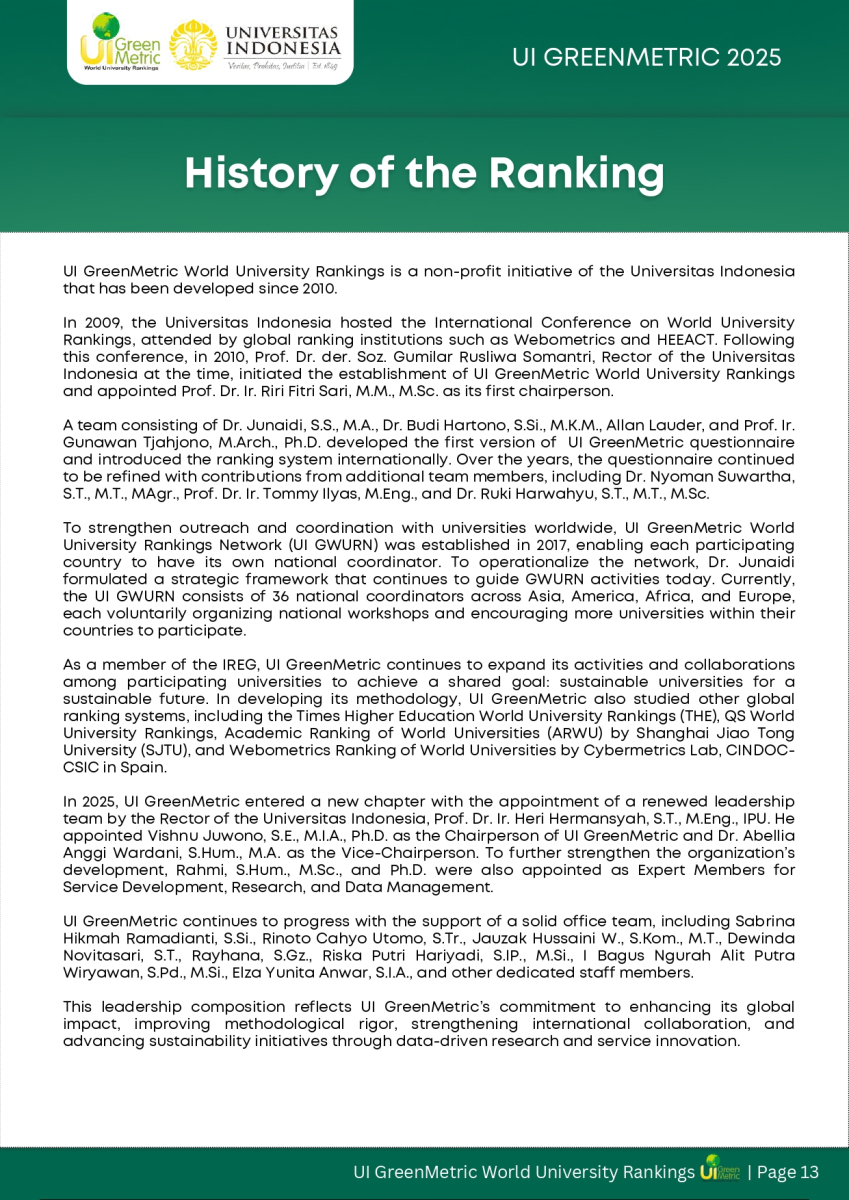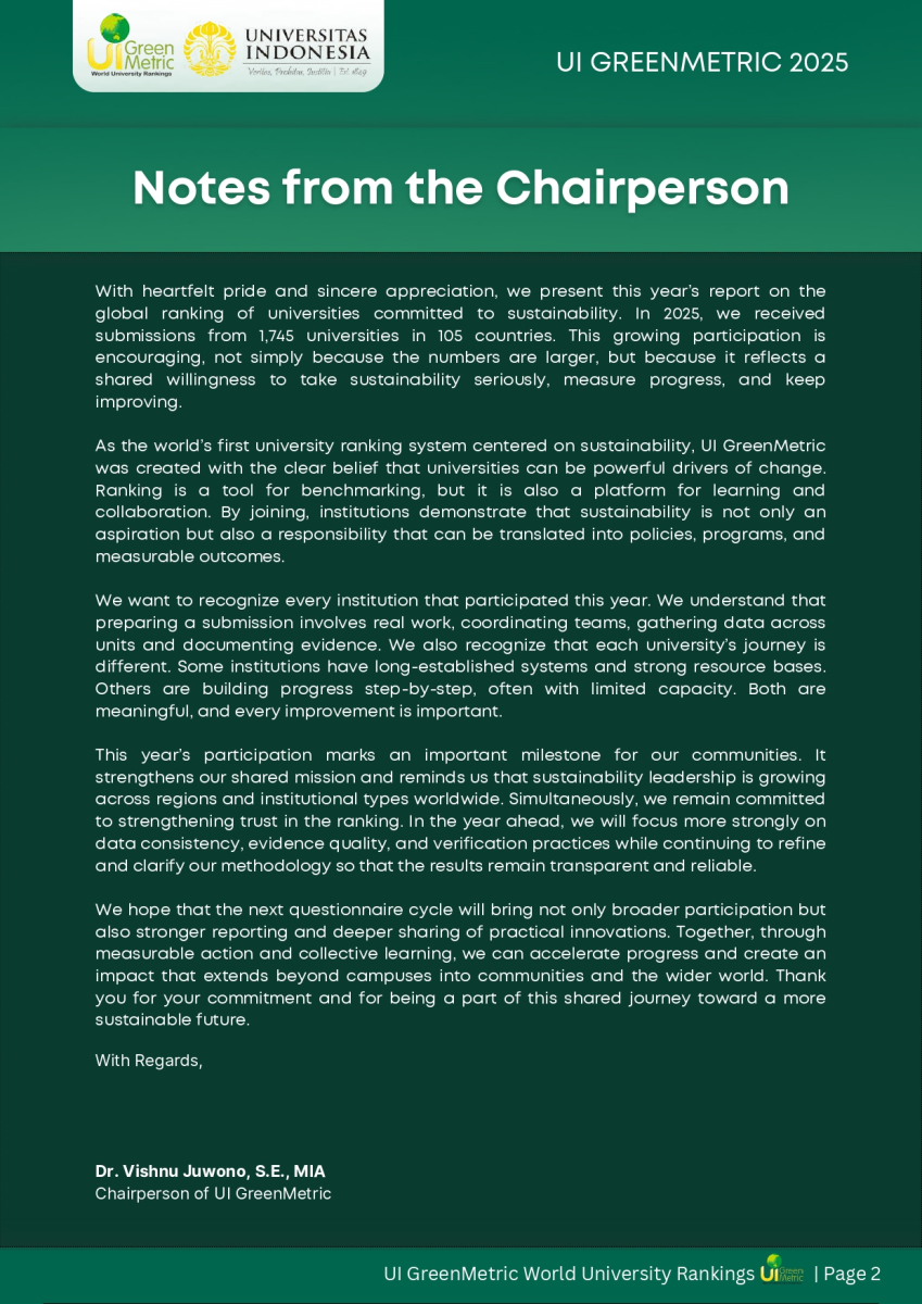 FACT FILE 2025 UI GREENMETRIC WORLD UNIVERSITY RANKINGS